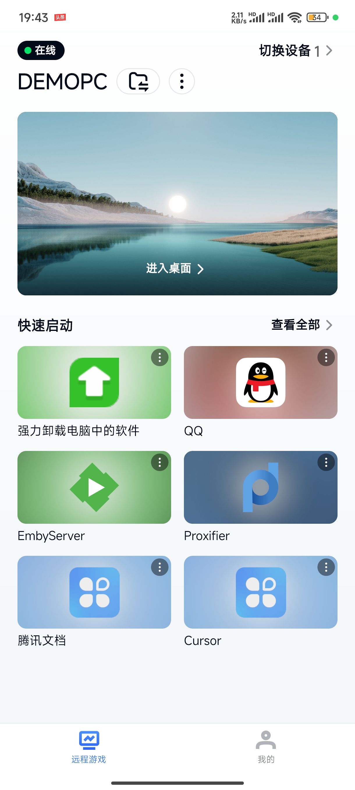 2)在手机/平板端,运行 网易UU远程 App,登录相同用户账号,即可连接上电脑。